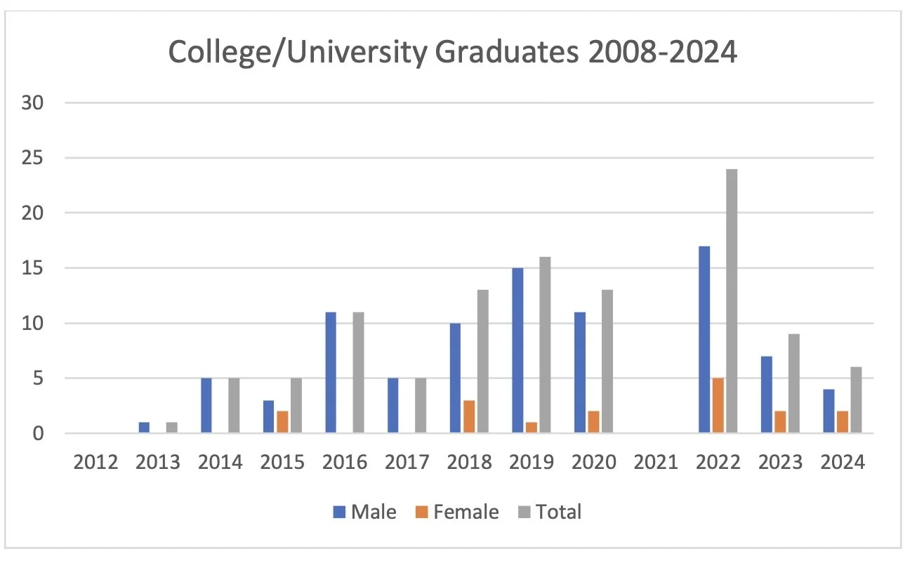 There were no college graduates in 2021 due to the disruptions caused by COVID19 pandemic.
