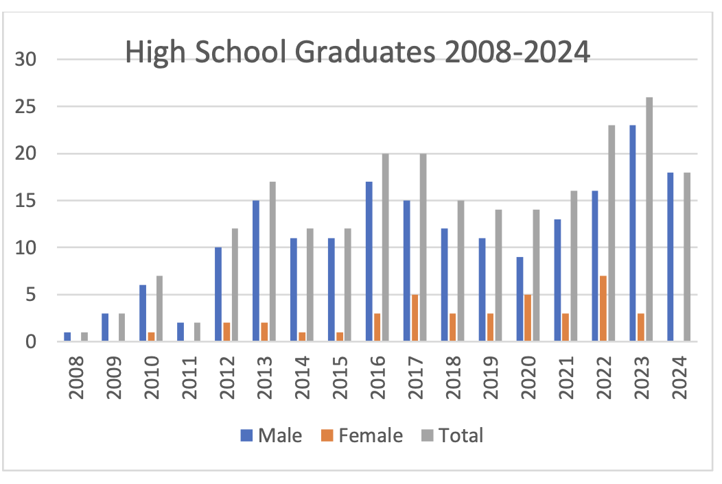 In 2013 the first students who had started school at the Thorn Tree preschools in 2002 graduated from trade schools and colleges. These students were the first person in their families to ever go to school. They all have jobs and send part of their wages home. They have a great sense of duty and responsibility and they are very proud to be able to do this. Many are helping to put their younger siblings through school. By 2024 a total of 340 students have graduated from high schools, trade schools, colleges and universities. Among them are carpenters, plumbers, tour guides, cooks, conservancy rangers, nurses and teachers.